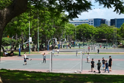 Ra’anana Park (central landmark) connects many of these districts and serves as a social meeting point for all residents, with cycling paths, lakes, and performance spaces.